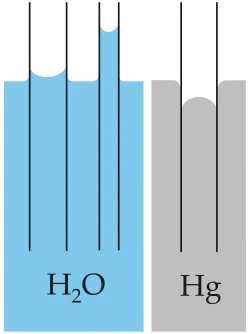 With some pairs of materials, such as mercury and glass, the intermolecular forces within the liquid exceed those between the solid and the liquid, so a convex meniscus forms and capillary action works in reverse.