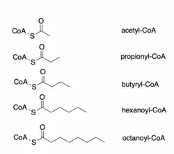 - ↑ Hsiao YS, Jogl G, Tong L (July 2004). "Structural and biochemical studies of the substrate selectivity of carnitine acetyltransferase". The Journal of Biological Chemistry. 279 (30): 31584–31589. doi:10.1074/jbc.M403484200. PMID 15155726.
