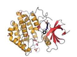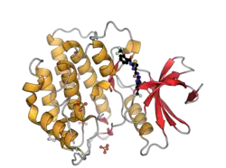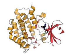 - ↑ Hanks SK, Hunter T (May 1995). "Protein kinases 6. The eukaryotic protein kinase superfamily: kinase (catalytic) domain structure and classification". FASEB Journal. 9 (8): 576–96. doi:10.1096/fasebj.9.8.7768349. PMID 7768349. S2CID 21377422.