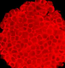 As previously mentioned, the same properties of catenin that give it an important role in normal cell fate determination, homeostasis and growth, also make it susceptible to alterations that can lead to abnormal cell behavior and growth. Any changes in cytoskeletal organization and adhesion can lead to altered signaling, migration and a loss of contact inhibition that can promote cancer development and tumor formation.[20][21] In particular, catenins have been identified to be major players in aberrant epithelial cell layer growth associated with various types of cancer. Mutations in genes encoding these proteins can lead to inactivation of cadherin cell adhesions and elimination of contact inhibition, allowing cells to proliferate and migrate, thus promoting tumorigenesis and cancer development.[9] Catenins are known to be associated with colorectal and ovarian cancer, and they have been identified in pilomatrixoma, medulloblastoma, pleomorphic adenomas, and malignant mesothelioma.[6]