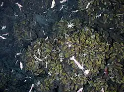 - ↑ Cavenaugh, Colleen M.; et al. (1981). "Prokaryotic Cells in the Hydrothermal Vent Tube Worms Riftia Jones: Possible Chemoautotrophic Symbionts". Science. 213 (4505): 340–342. doi:10.1126/science.213.4505.340. PMID 17819907.