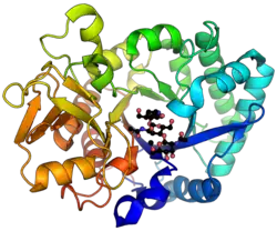 - ↑ Henrissat B (December 1991). "A classification of glycosyl hydrolases based on amino acid sequence similarities". The Biochemical Journal. 280 ( Pt 2) (2): 309–16. doi:10.1042/bj2800309. PMC 1130547. PMID 1747104.