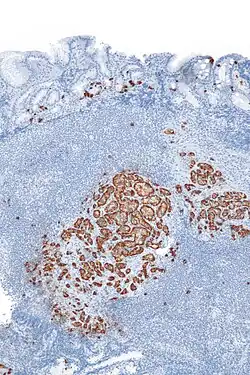 Micrograph of a paraganglioma stained with chromogranin-A immunostain.