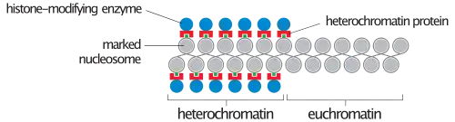 - Constitutive heterochromatin, which is never expressed. It is located around the centromere and usually contains repetitive sequences.