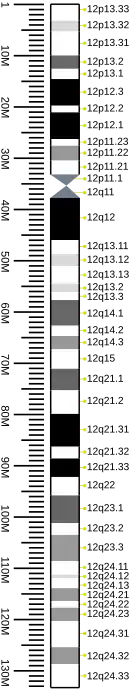 1. 1 2 "Search results - 12[CHR] AND "Homo sapiens"[Organism] AND ("has ccds"[Properties] AND alive[prop]) - Gene". NCBI. CCDS Release 20 for Homo sapiens. 2016-09-08. Retrieved 2017-05-28.