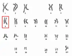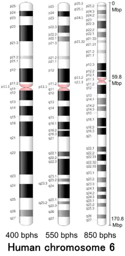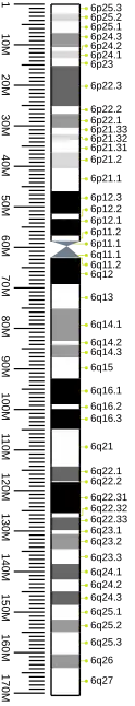 - ↑ "Chromosome 6: Chromosome summary - Homo sapiens". Ensembl Release 88. 2017-03-29. Retrieved 2017-05-19.