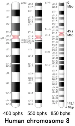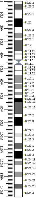- ↑ "Human chromosome 8: entries, gene names and cross-references to MIM". UniProt. 2018-02-28. Retrieved 2018-03-16.