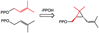- Erickson HK, Poulter CD (2003). "Chrysanthemyl diphosphate synthase. The relationship among chain elongation, branching, and cyclopropanation reactions in the isoprenoid biosynthetic pathway". J. Am. Chem. Soc. 125 (23): 6886–8. doi:10.1021/ja034520g. PMID 12783539.