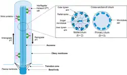 - 1 2 3 Sánchez I, Dynlacht BD (June 2016). "Cilium assembly and disassembly". Nature Cell Biology. 18 (7): 711–717. doi:10.1038/ncb3370. PMC 5079433. PMID 27350441.