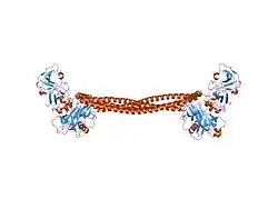 The immunity protein is relatively small, containing 85 amino acids. An extra ribosome binding site has been found to precede the immunity gene on the polycistronic Clo DF13 mRNA,[1] which perhaps accounts for the fact that, in cloacinogenic cells, more immunity protein than cloacin is synthesised.[1] Comparison of the complete amino acid sequence of the Clo DF13 immunity protein with that of the Col E3 and Col E6 immunity proteins reveals extensive similarities in primary structure, although Col E3 and Clo DF13 immunity proteins are exchangeable only to a low extent in vivo and in vitro.[1]
