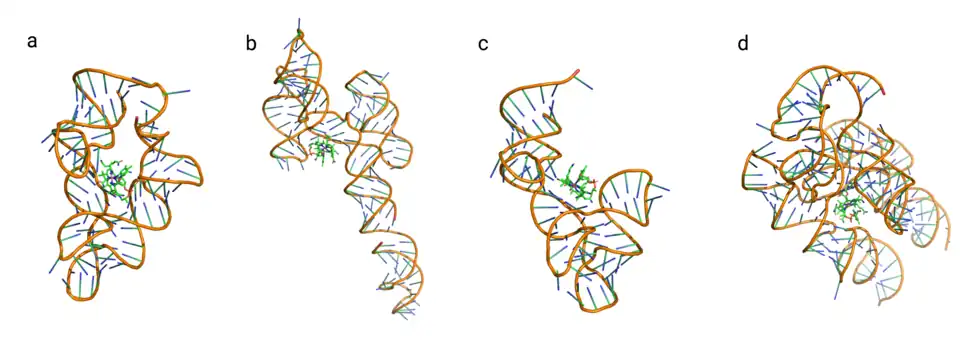 - ↑ Ariza-Mateos A, Nuthanakanti A, Serganov A (August 2021). "Riboswitch Mechanisms: New Tricks for an Old Dog". Biochemistry. Biokhimiia. 86 (8): 962–975. doi:10.1134/S0006297921080071. PMC 8961697. PMID 34488573. S2CID 237431666.