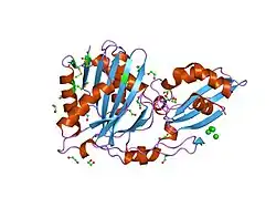 ![]() The three-dimensional structure of BirA, the repressor of the Escherichia coli biotin biosynthetic operon.[1] | |||||||||