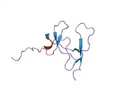 Colipase is a small protein (12K) with five conserved disulphide bonds. Structural analogies have been recognised between a developmental protein (Dickkopf), the pancreatic lipase C-terminal domain, the N-terminal domains of lipoxygenases and the C-terminal domain of alpha-toxin. These non-catalytic domains in the latter enzymes are important for interaction with membrane. It has not been established if these domains are also involved in eventual protein cofactor binding as is the case for pancreatic lipase.[8]