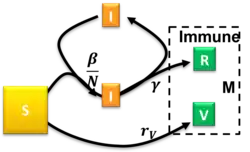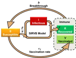 - ↑ Ariyaratne P, Ramasinghe LP, Ayyash JS, Kelley TM, Plant-Collins TA, Shinkle LW, Zuercher AM, Chen J (2025). "Application and significance of SIRVB model in analyzing COVID-19 dynamics". Scientific Reports. 15: 8526. doi:10.1038/s41598-025-90260-4. PMC 11903956.