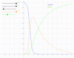 Using a fixed population, in the three functions resolves that the value should remain constant within the simulation, if a simulation is used to solve the SIR model. Alternatively, the analytic approximant[10] can be used without performing a simulation. The model is started with values of , and . These are the number of people in the susceptible, infected and removed categories at time equals zero. If the SIR model is assumed to hold at all times, these initial conditions are not independent.[10] Subsequently, the flow model updates the three variables for every time point with set values for and . The simulation first updates the infected from the susceptible and then the removed category is updated from the infected category for the next time point (t=1). This describes the flow persons between the three categories. During an epidemic the susceptible category is not shifted with this model, changes over the course of the epidemic and so does . These variables determine the length of the epidemic and would have to be updated with each cycle.