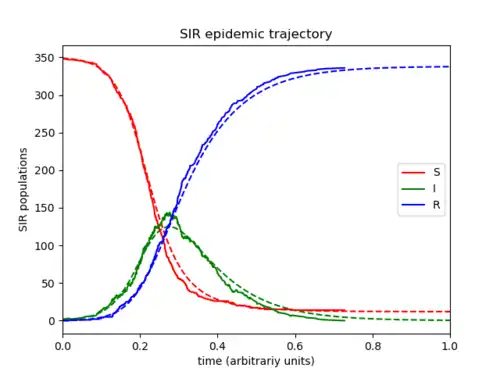 - ↑ Simon, Cory (2020). "The SIR dynamic model of infectious disease transmission and its analogy with chemical kinetics". PeerJ Physical Chemistry. 2 (2): e14. doi:10.7717/peerj-pchem.14.