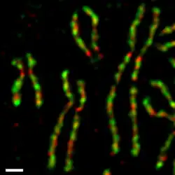 - ↑ Schalbetter SA, Goloborodko A, Fudenberg G, Belton JM, Miles C, Yu M, Dekker J, Mirny L, Baxter J (2017). "SMC complexes differentially compact mitotic chromosomes according to genomic context". Nat Cell Biol. 19 (9): 1071–80. doi:10.1038/ncb3594. PMC 5640152. PMID 28825700.