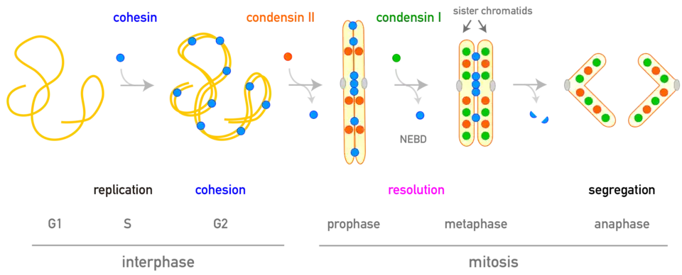 - ↑ Dekker B, Dekker J (2022). "Regulation of the mitotic chromosome folding machines". Biochem J. 479 (20): 2153–73. doi:10.1042/BCJ20210140. PMC 9704520. PMID 36268993.