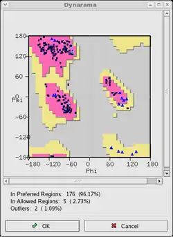 - Ramachandran plot - validate the torsion angles of a protein chain.