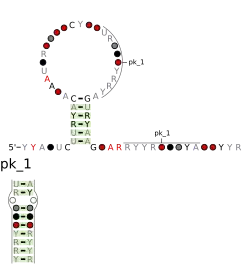The Coronavirus 3′ UTR pseudoknot is an RNA structure found in the coronavirus genome. Coronaviruses contain 30 kb single-stranded positive-sense RNA genomes. The 3′ UTR region of these coronavirus genomes contains a conserved ~55 nucleotide pseudoknot structure which is necessary for viral genome replication.[1] The mechanism of cis-regulation is unclear, but this element is postulated to function in the plus-strand.