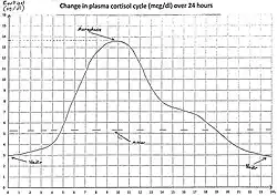 Cortisol follows a circadian rhythm, and to accurately measure cortisol levels is best to test four times per day through saliva. An individual may have normal total cortisol but have a lower than normal level during a certain period of the day and a higher than normal level during a different period. Therefore, some scholars question the clinical utility of cortisol measurement.[70][71][72][73]