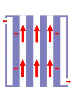 In chemical engineering, biochemical engineering and protein purification, cross-flow filtration[1] (also known as tangential flow filtration[2]) is a type of filtration (a particular unit operation). Cross-flow filtration is different from dead-end filtration in which the feed is passed through a membrane or bed, the solids being trapped in the filter and the filtrate being released at the other end. Cross-flow filtration gets its name because the majority of the feed flow travels tangentially across the surface of the filter, rather than into the filter.[1] The principal advantage of this is that the filter cake (which can blind the filter) is substantially washed away during the filtration process, increasing the length of time that a filter unit can be operational. It can be a continuous process, unlike batch-wise dead-end filtration.