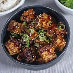 Besides cultured meat, the terms healthy meat,[28] slaughter-free meat,[29] in vitro meat, vat-grown meat,[30] lab-grown meat,[31] cell-based meat,[32] clean meat,[33] cultivated meat[34][35] and synthetic meat[36] have been used to describe the product.[37] Although it has multiple meanings, artificial meat is occasionally used.[38]