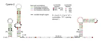 ![]() Consensus secondary structure of Cyano-2 RNAs | |