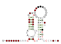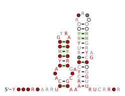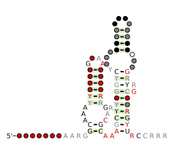 ![]() Consensus secondary structure and sequence conservation of Cyclic di-GMP-I riboswitch | |