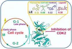 - ↑ Rastelli G, Anighoro A, Chripkova M, Carrassa L, Broggini M (2014-06-09). "Structure-based discovery of the first allosteric inhibitors of cyclin-dependent kinase 2". Cell Cycle. 13 (14): 2296–305. doi:10.4161/cc.29295. PMC 4111683. PMID 24911186.