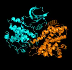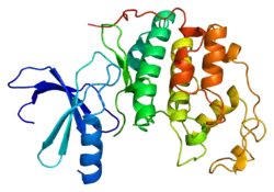 - ↑ PDB: 1FIN; Jeffrey PD, Russo AA, Polyak K, Gibbs E, Hurwitz J, Massagué J, Pavletich NP (July 1995). "Mechanism of CDK activation revealed by the structure of a cyclinA-CDK2 complex". Nature. 376 (6538): 313–20. Bibcode:1995Natur.376..313J. doi:10.1038/376313a0. PMID 7630397. S2CID 4361179.