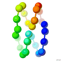 While the structures of cyclodextrins are planar circles, the structure of cycloamyloses with 10 to 14 glucose units were determined to be circular with strain-induced band-flips and kinks.[4][5] In contrast the structure of a larger cycloamylose with 26 glucose units was determined to comprise two short left-handed V-amylose helices in antiparallel arrangement.[6][7]