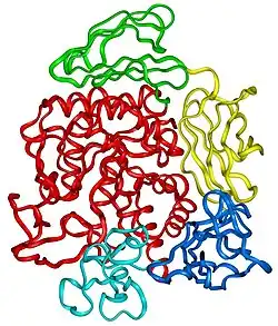 In enzymology, a cyclomaltodextrin glucanotransferase (also cyclodextrin glycosyl transferase or CGTase for short) (EC 2.4.1.19) is an enzyme that catalyzes the chemical reaction of cyclizing part of a 1,4-alpha-D-glucan molecule through the formation of a 1,4-alpha-D-glucosidic bond. They are bacterial enzymes belonging to the same family of the α-amylase specifically known as glycosyl-hydrolase family 13. This peculiar enzyme is capable of catalyzing more than one reaction with the most important being the synthesis of non-reducing cyclic dextrins known as cyclodextrins starting from starch, amylose, and other polysaccharides.