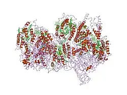 ![]() Structure of oxygen-evolving photosystem II from Thermosynechococcus vulcanus.[2] | |||||||||