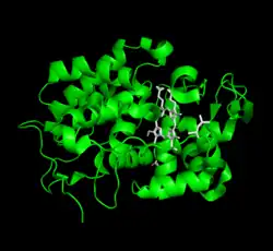 - ↑ Poulos TL, Freer ST, Alden RA, Edwards SL, Skogland U, Takio K, Eriksson B, Xuong N, Yonetani T, Kraut J (January 1980). "The crystal structure of cytochrome c peroxidase" (PDF). The Journal of Biological Chemistry. 255 (2): 575–80. doi:10.1016/S0021-9258(19)86214-2. PMID 6243281.