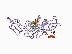- 1 2 3 Martinez SE, Huang D, Ponomarev M, Cramer WA, Smith JL (June 1996). "The heme redox center of chloroplast cytochrome f is linked to a buried five-water chain". Protein Sci. 5 (6): 1081–92. doi:10.1002/pro.5560050610. PMC 2143431. PMID 8762139.