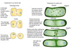 - ↑ Otegui M, Staehelin LA (December 2000). "Cytokinesis in flowering plants: more than one way to divide a cell". Curr. Opin. Plant Biol. 3 (6): 493–502. Bibcode:2000COPB....3..493O. doi:10.1016/s1369-5266(00)00119-9. PMID 11074381.