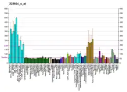 - Beausoleil SA, Jedrychowski M, Schwartz D, et al. (2004). "Large-scale characterization of HeLa cell nuclear phosphoproteins". Proc. Natl. Acad. Sci. U.S.A. 101 (33): 12130–5. Bibcode:2004PNAS..10112130B. doi:10.1073/pnas.0404720101. PMC 514446. PMID 15302935.