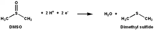 DMSO reductase (DMSOR) and other members of the DMSO reductase family are unique to bacteria and archaea. Enzymes of this family in anaerobic oxidative phosphorylation and inorganic-donor-based lithotrophic respiration. These enzymes have been engineered to degrade oxoanions.[1][2][3] DMSOR catalyzes the transfer of two electrons and one oxygen atom in the reaction: The active site of DMSOR contains molybdenum, which is otherwise rare in biology.[2]