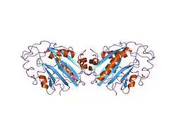 - ↑ Friedhoff P, Gimadutdinow O, Pingoud A (August 1994). "Identification of catalytically relevant amino acids of the extracellular Serratia marcescens endonuclease by alignment-guided mutagenesis". Nucleic Acids Res. 22 (16): 3280–7. doi:10.1093/nar/22.16.3280. PMC 523719. PMID 8078761.