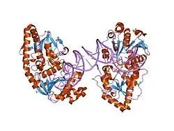 ![]() ternary complex of t4 phage bgt with udp and a 13 mer dna duplex | |||||||||