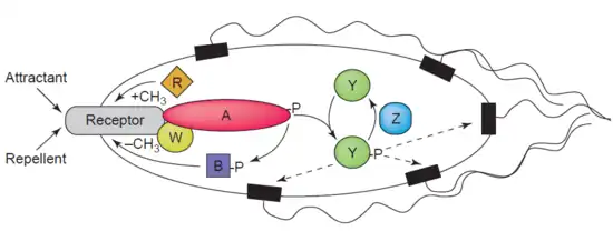 - ↑ Park SY, Borbat PP, Gonzalez-Bonet G, Bhatnagar J, Pollard AM, Freed JH, Bilwes AM, Crane BR (May 2006). "Reconstruction of the chemotaxis receptor-kinase assembly". Nature Structural & Molecular Biology. 13 (5): 400–7. doi:10.1038/nsmb1085. PMID 16622408. S2CID 859928.
