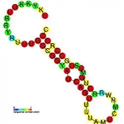 DicF RNA is a non-coding RNA that is an antisense inhibitor of cell division gene ftsZ.[1] DicF is bound by the Hfq protein which enhances its interaction with its targets. Pathogenic E. coli strains possess multiple copies of sRNA DicF in their genomes, while non-pathogenic strains do not. DicF and Hfq are both necessary to reduce FtsZ protein levels, leading to cell filamentation under anaerobic conditions.[2]
