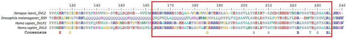 Alignment of dishevelled-specific domain