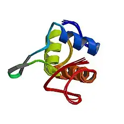 Dishevelled (Dsh) is a family of proteins involved in canonical and non-canonical Wnt signalling pathways. Dsh (Dvl in mammals) is a cytoplasmic phosphoprotein that acts directly downstream of frizzled receptors.[1] It takes its name from its initial discovery in flies, where a mutation in the dishevelled gene was observed to cause improper orientation of body and wing hairs.[2] There are vertebrate homologs in zebrafish, Xenopus (Xdsh), mice (Dvl1, -2, -3) and humans (DVL-1, -2, -3). Dsh relays complex Wnt signals in tissues and cells, in normal and abnormal contexts.[2] [3] It is thought to interact with the SPATS1 protein when regulating the Wnt Signalling pathway.[4]