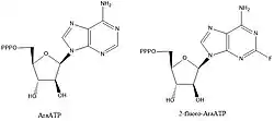 Inhibitors of DNA primases are valuable compounds for the elucidation of biochemical pathways and key interactions, but they are also of interest as lead compounds to design drugs against bacterial diseases. Most of the compounds known to inhibit primases are nucleotide analogs such as AraATP (see Vidarabine) and 2-fluoro-AraATP. These compounds will often be used as substrates by the primase, but once incorporated synthesis or elongation can no longer occur. For example, E. coli DnaG will use 2',3'-dideoxynucleoside 5'-triphosphates (ddNTPs) as substrates, which act as chain terminators due to the lack of a 3' hydroxyl to form a phosphodiester bond with the next nucleotide.[1]