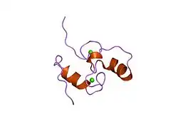 - ↑ PDB: 1DAQ; Lytle BL, Volkman BF, Westler WM, Heckman MP, Wu JH (March 2001). "Solution structure of a type I dockerin domain, a novel prokaryotic, extracellular calcium-binding domain". J. Mol. Biol. 307 (3): 745–53. doi:10.1006/jmbi.2001.4522. PMID 11273698.