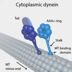 18. 1 2 3 Roberts AJ, Numata N, Walker ML, Kato YS, Malkova B, Kon T, Ohkura R, Arisaka F, Knight PJ, Sutoh K, Burgess SA (February 2009). "AAA+ Ring and linker swing mechanism in the dynein motor". Cell. 136 (3): 485–95. doi:10.1016/j.cell.2008.11.049. PMC 2706395. PMID 19203583.