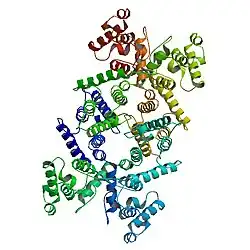 - ↑ Sadoulet-Puccio HM, Rajala M, Kunkel LM (November 1997). "Dystrobrevin and dystrophin: an interaction through coiled-coil motifs". Proceedings of the National Academy of Sciences of the United States of America. 94 (23): 12413–8. Bibcode:1997PNAS...9412413S. doi:10.1073/pnas.94.23.12413. PMC 24974. PMID 9356463.