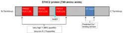The EFHC2 gene encodes a 749-amino acid protein which contains three DM10 domains (InterPro: IPR006602) and three calcium-binding EF-hand motifs.[5]